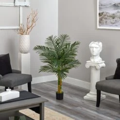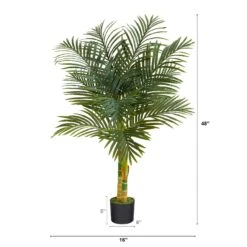Picture your perfect summer vacation: Where you sun-soak on a hammock, feel the sea breeze hitting your face while sipping on a coconut. Luckily you can now tropic like its hot with this Golden Cane Artificial Palm Tree. It features lush, green leaves and gorgeous golden palm fronds stemming from a bamboo-like trunk with yellow hues. Standing a tall 4β from a black planter, recreate island life in your sunroom, office (we promise smiling co-workers), or compact spaces. Do you want to feel the sea breeze with this tree?