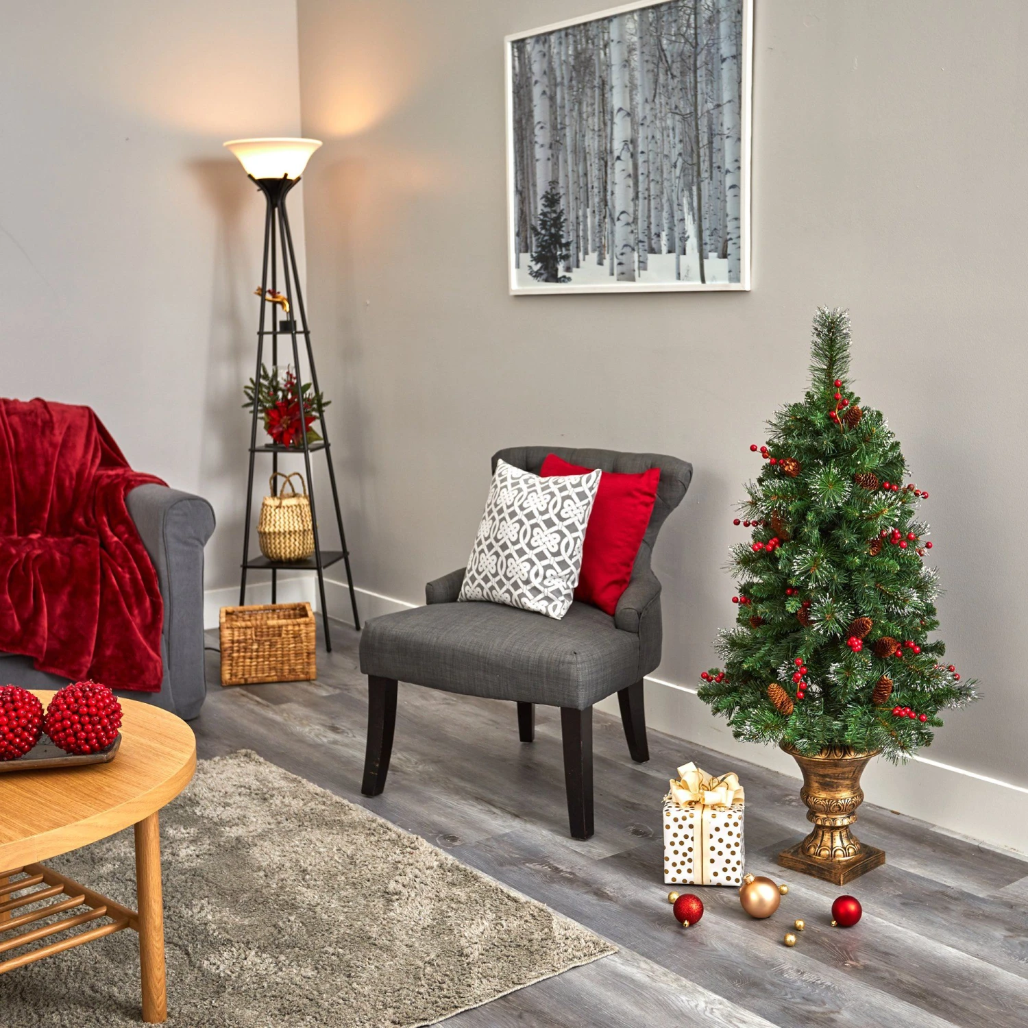 4’ Pine, Pinecone And Berries Artificial Christmas Tree With 100 Clear LED Lights In Decorative Urn