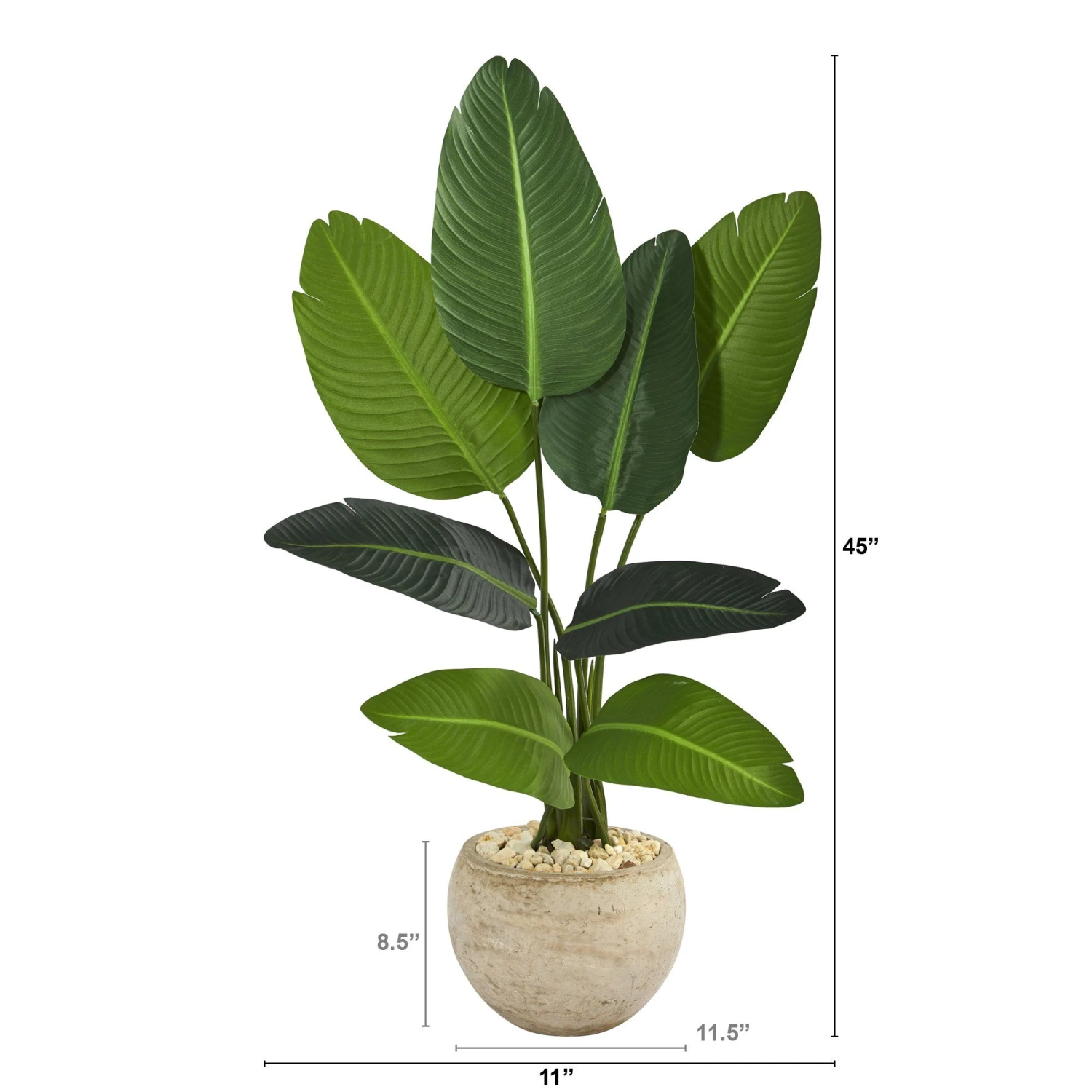 45” Travelers Palm Artificial Tree In Sand Colored Planter