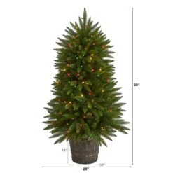 5′ Sierra Fir Artificial Christmas Tree With 200 Multicolored Lights And 428 Bendable Branches In Decorative Container