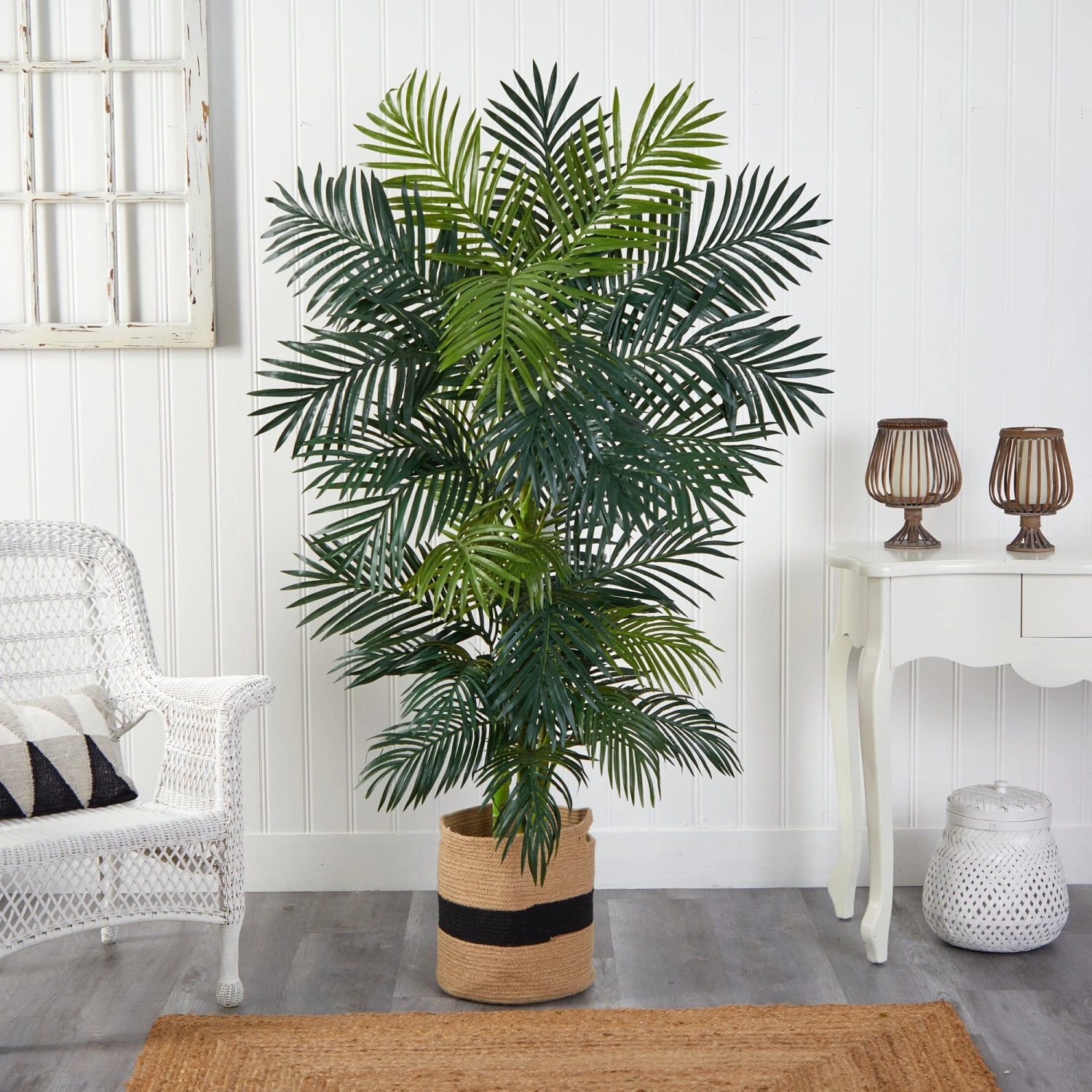 Picture your perfect summer vacation: Where you sun-soak on a hammock, feel the sea breeze hitting your face while sipping on a coconut. Luckily you can now tropic like its hot with this Golden Cane Artificial Palm Tree. It features lifelike lush, green leaves and gorgeous golden palm fronds stemming from a bamboo-like trunk with yellow hues. Standing 6.5′ tall from a natural planter(included in height), this faux Golden Cane Palm Tree will recreate island life in your sunroom, office (we promise smiling co-workers), or guest room. Do you want to feel the sea breeze with this tree?