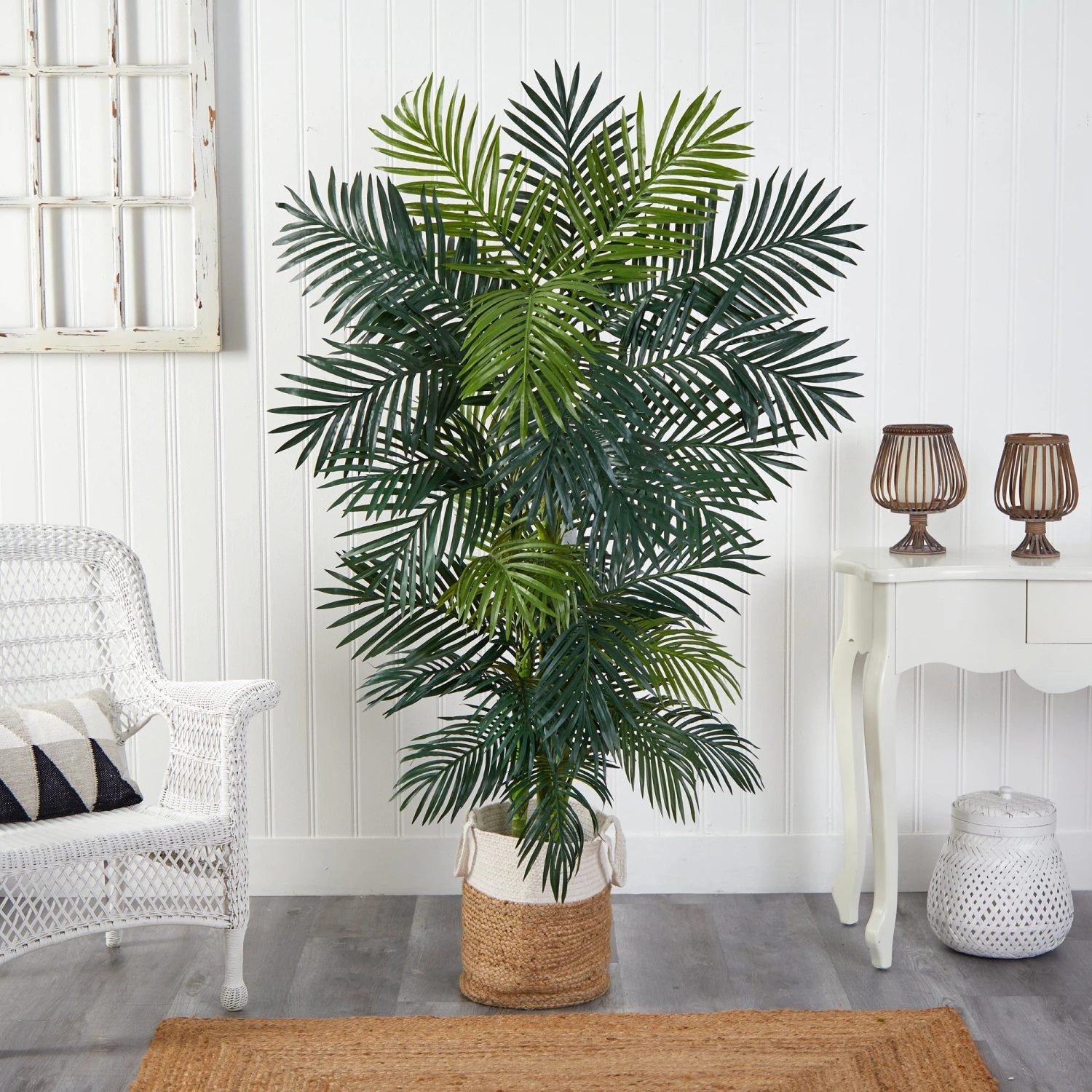 6.5′ Golden Cane Artificial Palm Tree In Handmade Natural Jute And Cotton Planter