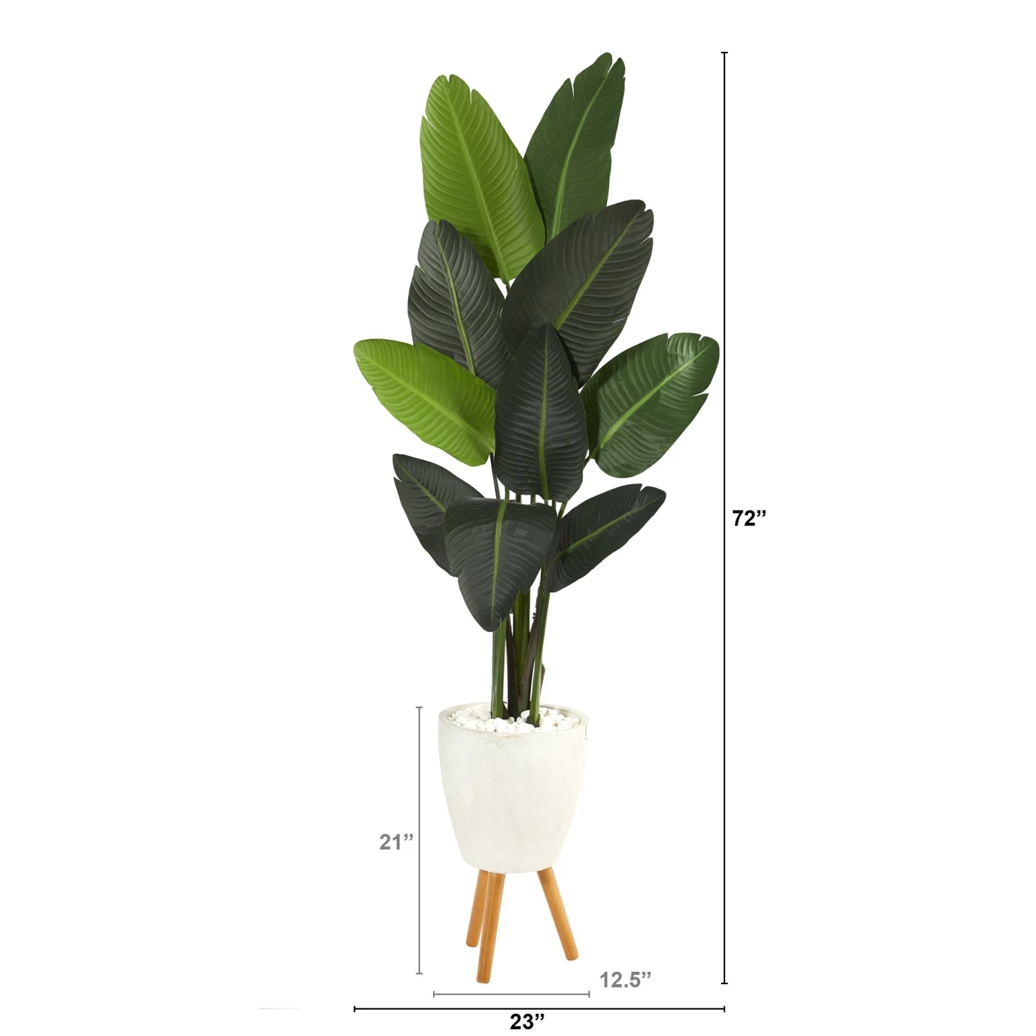 6β Traveler’s Palm Artificial Tree In White Planter With Stand