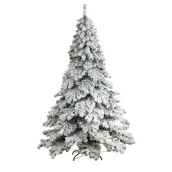 Recreate the scene from a kids’ movie with this Flocked Christmas tree. Inspired by a snowy mountain, this faux flocked tree has thick tiers of 1063 ascending branches that can house all your favorite ornaments. The lush, foliage in a snowed finish comes pre-strung with 400 LED lights that are more energy efficient and longer lasting. Perfectly suited for any Christmas lover that has dreamed of a white Christmas for years. Standing 7′ and stabilized in a metal stand, watch as this flocked Christmas tree steals the show, we mean Christmas.