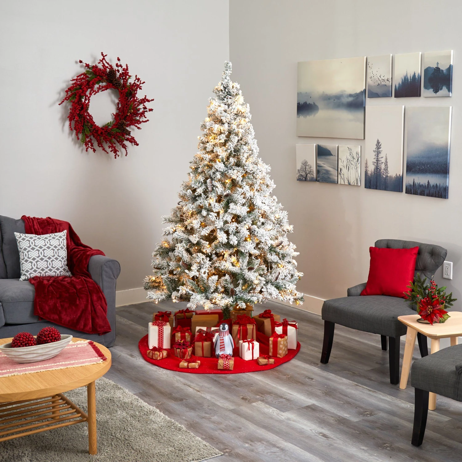 Create a picturesque Christmas this holiday season with the help of this Flocked White River Mountain Pine Artificial Christmas Tree. Easy to set-up and entirely maintenance-free, this winter-inspired Christmas tree boasts a robust collection of realistic looking foliage consisting of 868 easy-to-bend branches for showcasing holiday accents and accented throughout with faux pinecones that look incredibly realistic; it comes finished with a light frosting of faux snow to evoke the ultimate winter wonderland. Arriving pre-strung with 350 clear LED lights for stress-free decorating and carefully stabilized on an accompanying stand, this handsome 7’ tall frosted artificial Christmas tree will undoubtedly transform any home or office into a joyous holiday setting for years to come.