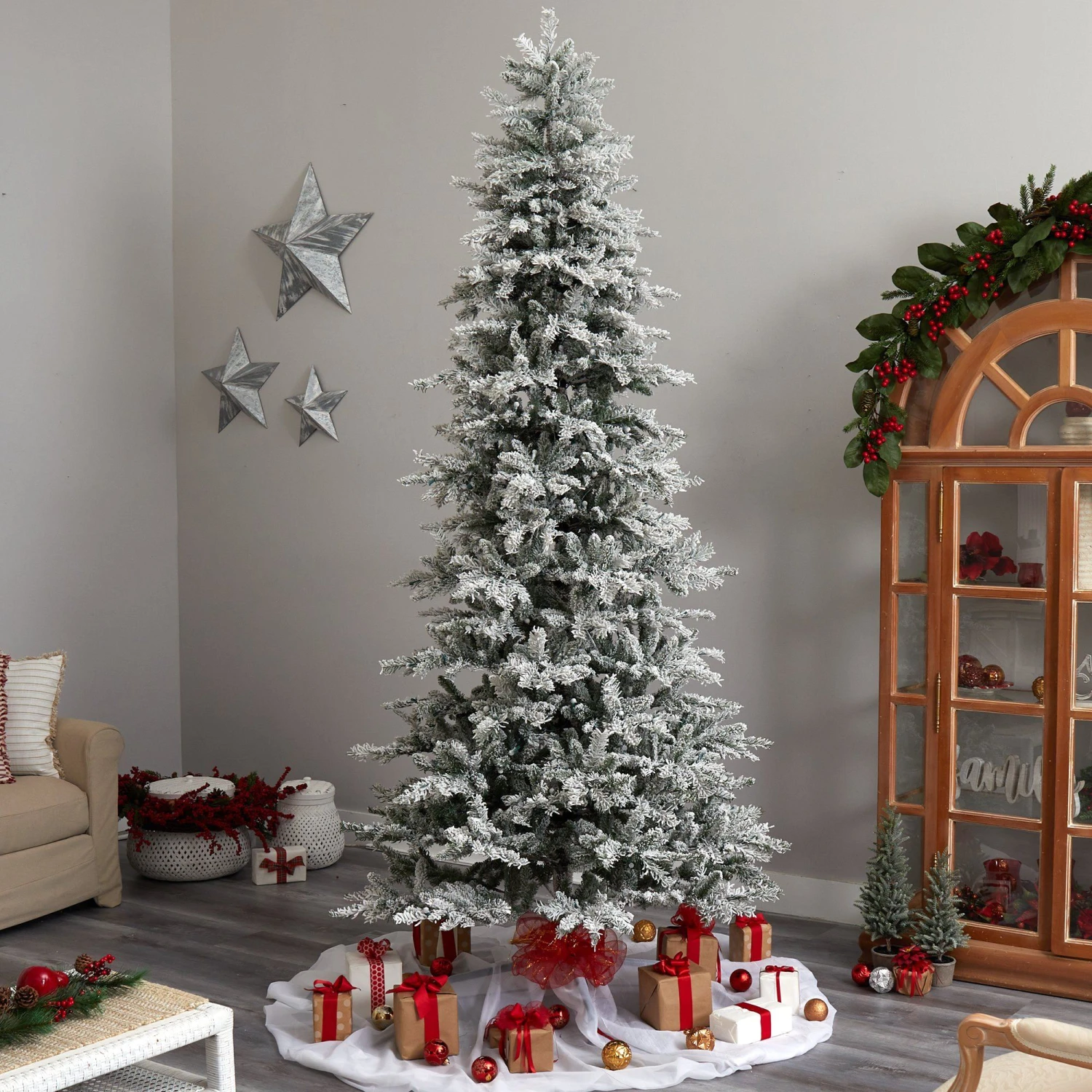 9.5’ Slim Flocked Nova Scotia Spruce Artificial Christmas Tree