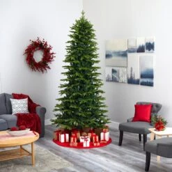 Create a traditional Christmas scene in your home or office with the help of this easy and effortless artificial Christmas tree! Completely maintenance-free, this realistic looking fake Christmas tree boasts multiple tiers of natural looking fir foliage made up of 2854 easy-to-bend branches, perfect for showcasing your favorite holiday ornaments. Arriving pre-strung with 800 clear LED lights to eliminate tangles and carefully stabilized on a metal stand, this impressive 9’ tall artificial Christmas tree will not only make decorating a breeze but ensure your home is always seasonally attired for years to come.